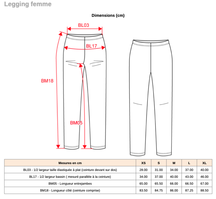 Disponible du XS au XL, ce legging s’adapte à toutes les morphologies grâce à des dimensions étudiées pour garantir confort et précision de coupe.